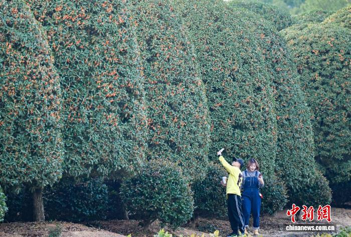10月28日,球形木樨树接续着花。指日,位于浙江杭州余杭的8000余棵网白球形木樨树程序着花,浓厚木樨喷鼻战童话丛林般的外型吸收没有少游人。中新社记者 王刚刚 摄