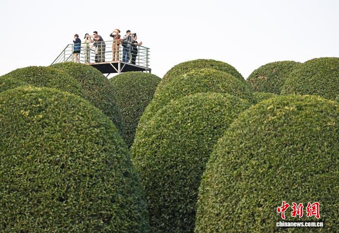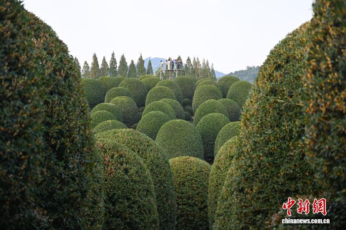10月28日,游人正在不雅景台上欣赏球形木樨树。不日,位于浙江杭州余杭的8000余棵网白球形木樨树顺序着花,浓厚木樨喷鼻战童话丛林般的外型吸收没有少游人。中新社记者 王刚刚 摄